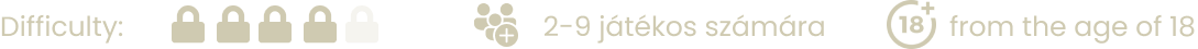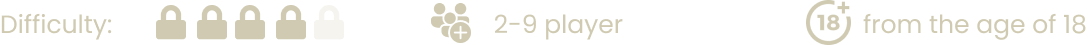 A max létszám 8 fő, de a pálya 2-6 fő esetén nyújtja a legjobb élményt! Minden pálya 8 éves kor felett felnőtt kísérettel igénybe vehető, kivéve a Boncmester titkai pályánk, ott a korhatár 18+ külön kérésre 16+ felnőtt kísérettel